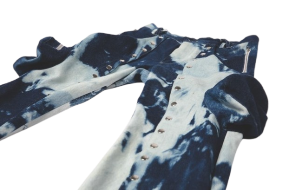 The Icon Snap Jeans by IZAYAH redefine what denim can be. Designed with a bold multi-panel construction and finished in IZAYAH’s signature hand-bleached pattern, these straight-cut jeans introduce true functional versatility. The fully functional snap system along the legs allows you to create an adjustable silhouette, shifting from a clean straight fit to an open-flare statement in seconds. Sculptural pocket pouches, formed from an additional top denim layer, bring depth, utility, and avant-garde edge to the piece. Every pair stands alone. Every pair is made to order. Every pair is 1-of-1.